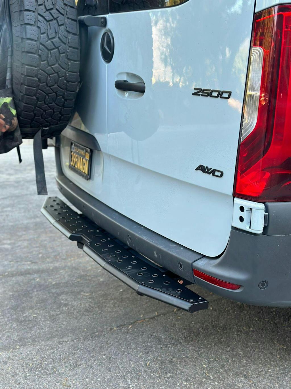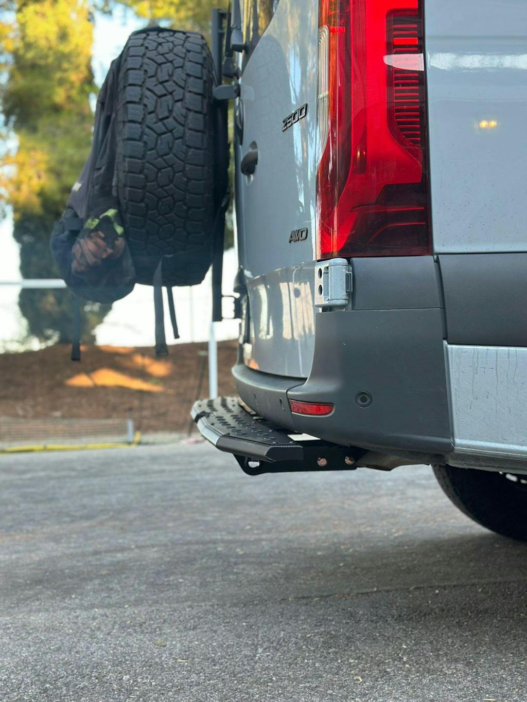 The Sprinter Rear Plate Step isn’t just a convenient way to step in the van, but the aluminum makes it lightweight and corrosion-resistant. The stainless steel brackets mount directly to the side of the factory tow hitch and leave room for using recovery shackles and the hitch itself.