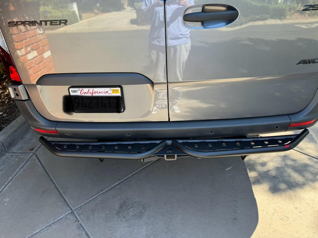 We constructed the Sprinter Rear Step with heavy-duty steel materials to last the lifetime of your van. The 1.5” steel tubing and steel plate make it solid and durable. It weighs approximately 30 pounds and is still strong enough to withstand whatever you throw at it.