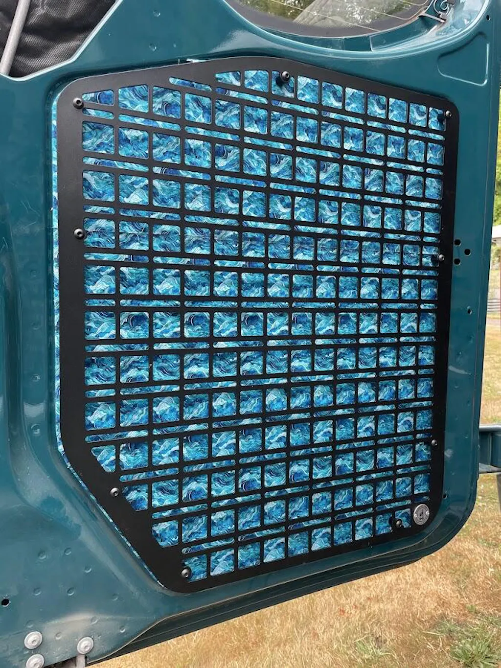 The Rear Door Molle Panels feature a 2MM thick aluminum with a durable outdoor-rated powder coat finish.