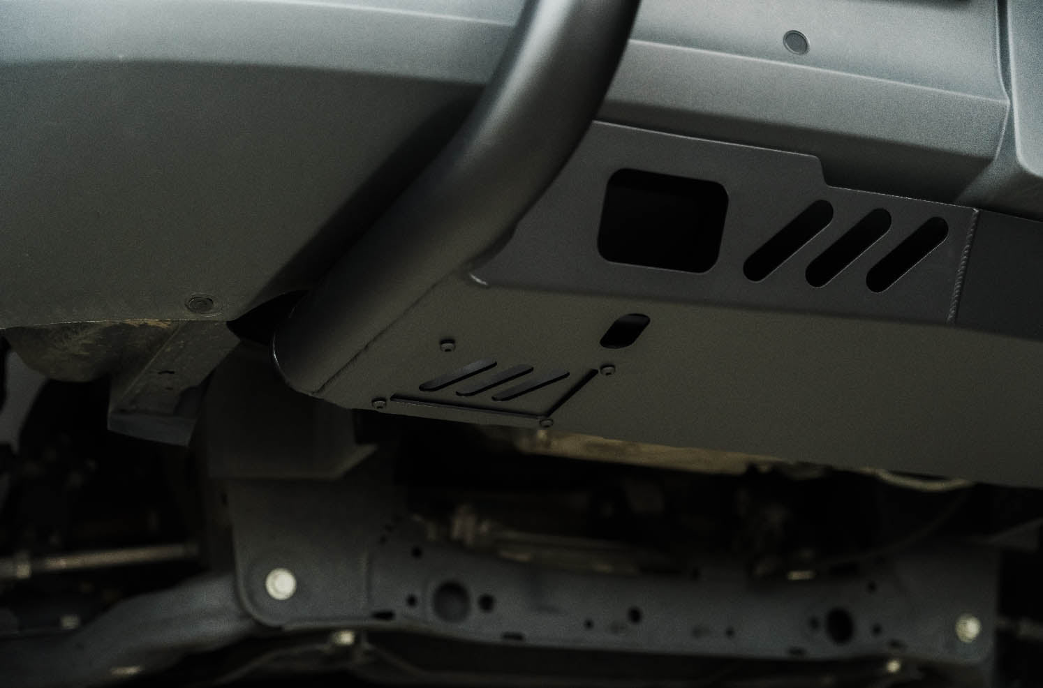 The Bull Bar and Skid Plate are designed to work as a system, covering your lighting needs up front and protecting critical engine components underneath.