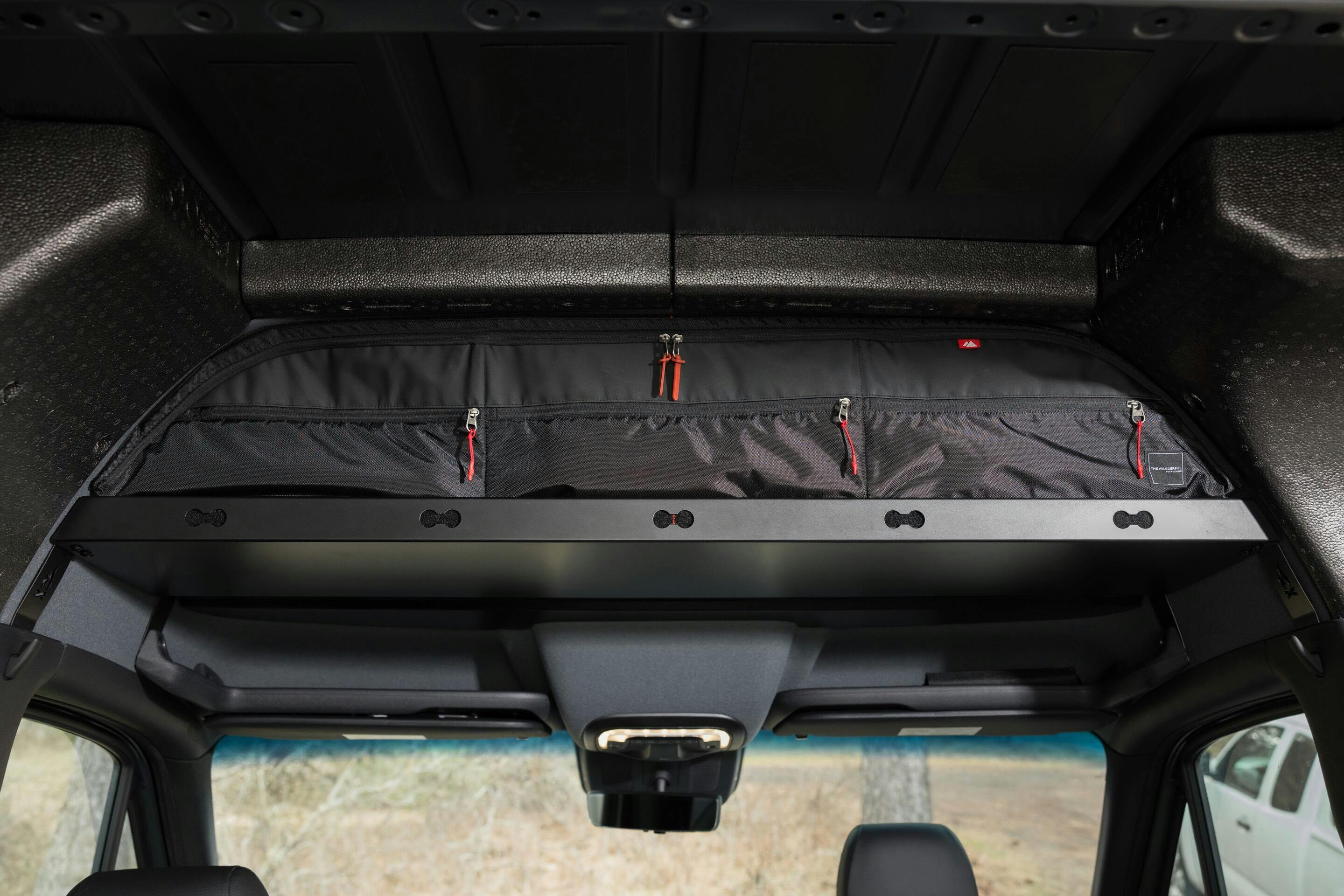 Everyone knows the headliner area is typically the biggest waste of space in the new Sprinter vans. Solve that problem and gain an ample amount of extra storage space above the driver and passenger area for blankets, gear, maps, or whatever else you need for your adventures.