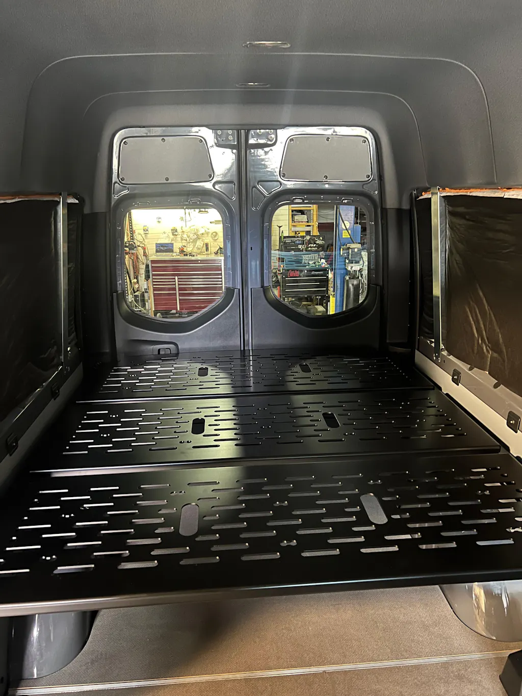 We designed the Flarespace compatible bed system so you can sleep sideways in your Sprinter van! If you already have a Sprinter equipped with Flarespace OR Vanspeed Capsules, you can easily mount this 2-panel bed system to gain more usable real estate in your van for sleeping sideways. This bed system features mounting holes for a DIY install and full compatibility with Adventure Wagon interior kits.